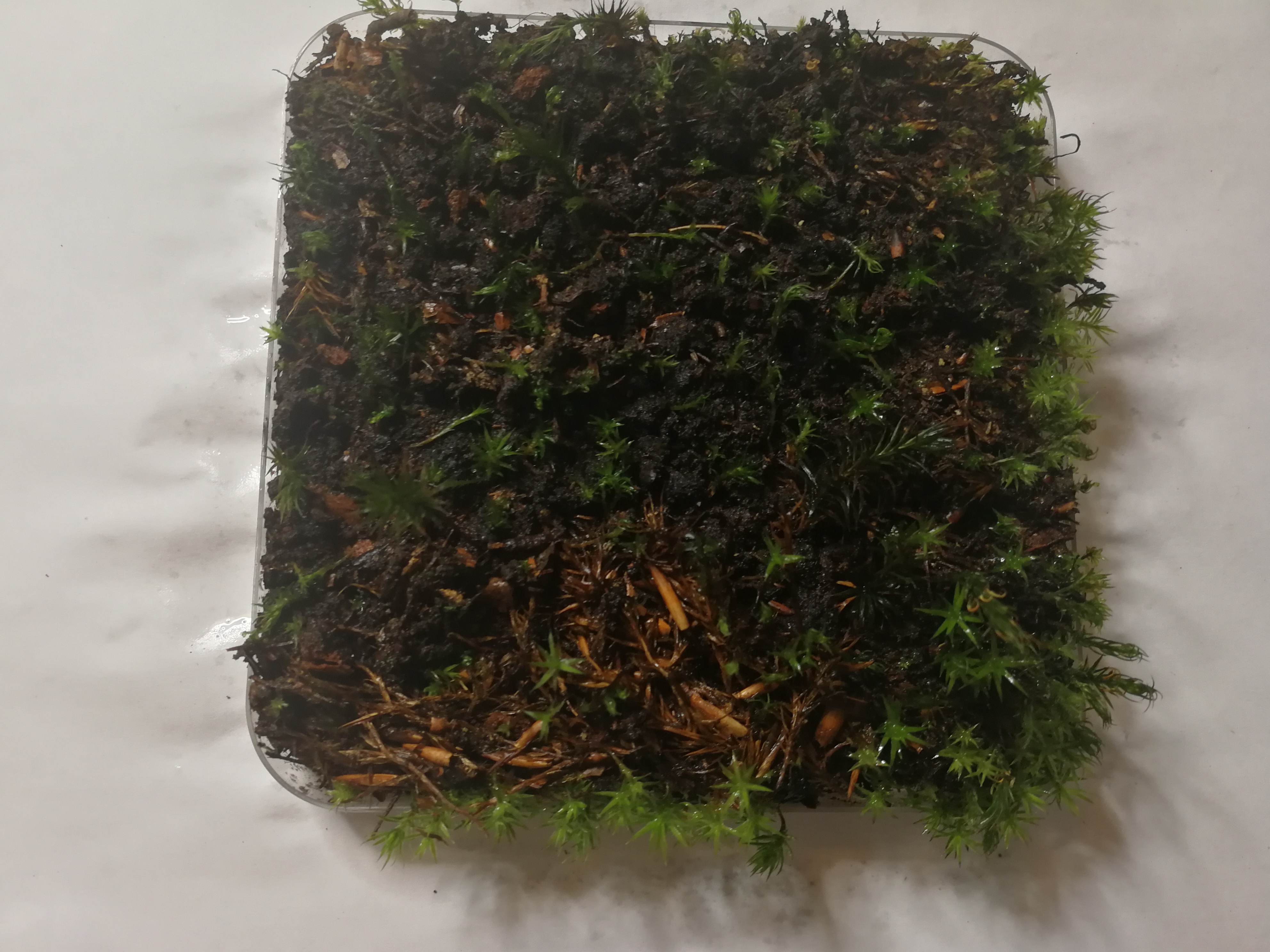 Another observation was that cultures glued to their substrate using agar saw surprising growth. When I first glued them down, I was quite worried I killed them. Mosses “absorb” water by capillary conduction along the outside of the gametophyte. Logically they also soaked up the molten agar. Instead of suffocating them it probably helped them to store water, keep wet and continually assimilating. The following picture is an example, showing the lush green carpet that developed. Sadly I don't have a before picture.